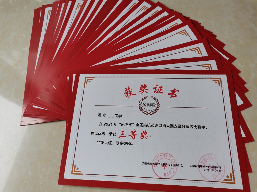 2021年4—5月,由安徽省高等学校图书情报工作委员会联合安徽省高等学校数字图书馆、科大讯飞有限责任公司共同主办的2021年度“讯飞杯”全国高校英语口语大赛落下帷幕。