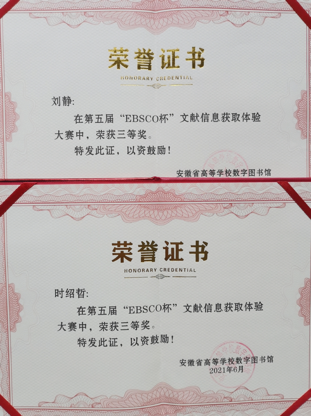 4月21日至6月20日,由安徽省高校图书情报工作委员会、安徽省高等学校数字图书馆举办的“春风万里、筑梦远航”第五届“EBSCO杯”文献信息获取体验大赛答题活动圆满结束。