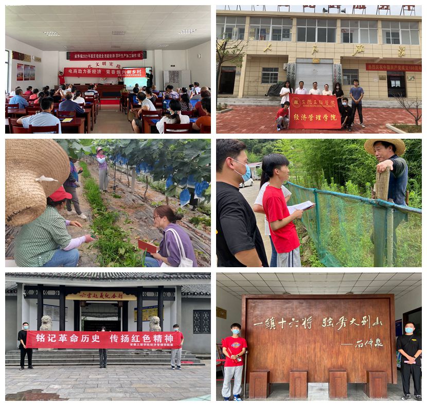 7月7日,团队一行抵达六安市独山镇,首先参观了红军时期革命旧址,见证血红历史,感受革命先烈力量,深入体会习近平总书记“七一”重要讲话精神和深刻内涵。随后,在当地政府人员的带领下深入基层,对茶叶种植户进行实地走访,了解茶园的种植、销售情况,听取茶户们的心声。根据调研情况,团队联合乡村政府开展了题为“电商助力茶经济,青春振兴新乡村”的讲座,经过深入探讨,调研团队人员对目前发展瓶颈提出了建设性意见,强调电商销售模式极大提高了传统销售的效益和效率,进一步促进当地经济发展,电商与当地茶业经济结合是大势所趋。