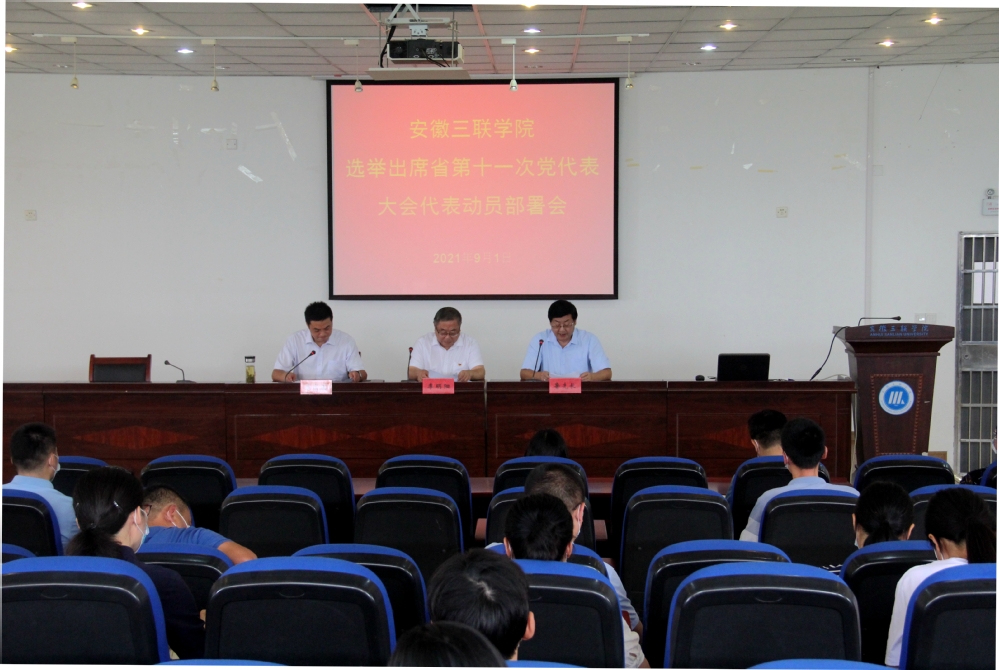 9月1日上午,学校在BO1学术报告厅召开选举出席安徽省第十一次党代表大会代表动员部署会。省教育督导专员、校党委书记李明阳出席会议并讲话,校领导姜发根、蔡文芬和校党委委员,以及全校基层党委(党总支)、党支部书记参加会议。会议由党委副书记、副校长鲁先长主持。