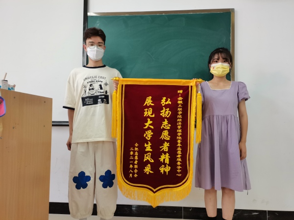 锦旗的获得是对我校青年志愿者们的赞扬和勉励,也是对学院志愿服务给予认可和肯定。青年志愿者们将一如既往,不忘初心,砥砺前行,继续以实际行动践行“奉献、友爱、互助、进步”的志愿者服务精神。(撰稿、摄影:经济管理学院 裴星月 编辑:隋欣)