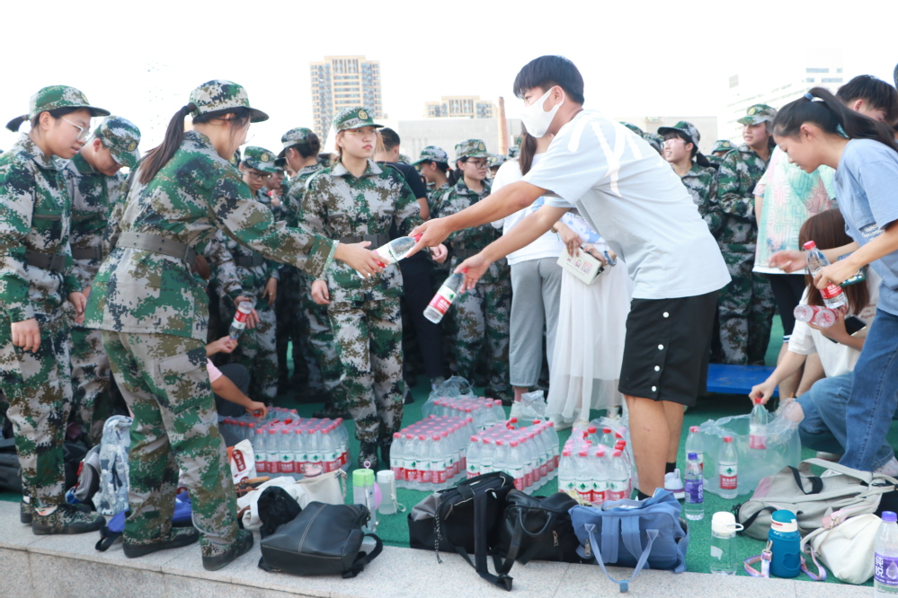 军训期间除了紧张有序的训练,也不乏趣味横生的精彩活动。同学们的才艺展示,各方阵之间的拉歌活动,充满欢声笑语。训练之余,青年志愿者还为同学们送来了免费的水,传递着温暖。辅导员也对学生密切关注,及时关注突发情况,并在训练后贴心慰问。