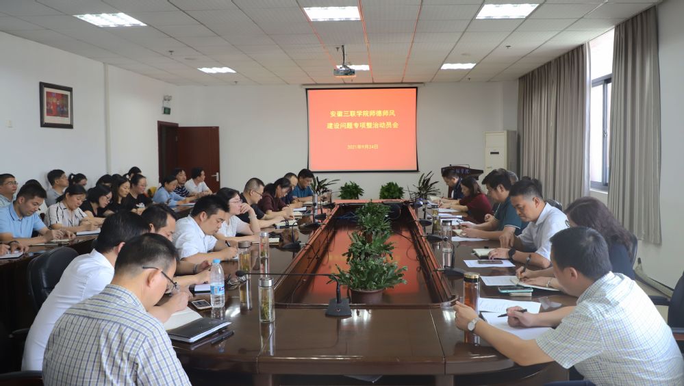 会议学习了安徽省委教育工委、省教育厅相关文件和我校师德师风建设问题专项整治工作方案。各二级单位负责人、各基层党委(党总支)书记参加会议。(撰稿:人力资源部王娟 摄影、编辑:刘欢)