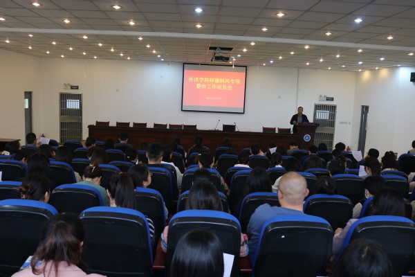 会议传达了学校师德师风专项整治工作方案,副院长易连英带领全体教师学习了《外语学院师德师风专项整治实施方案》。