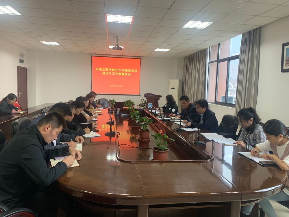 会上宣贯了《安徽三联学院2021年班风学风建设月活动实施方案》,学生处、教务处、质量管理与评估办公室分别对本次建设月活动做出具体工作部署。