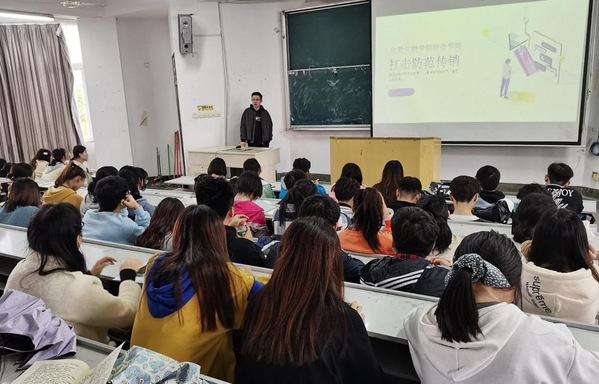 杨光结合打击传销组织活动案例,详细阐述了传销组织活动危害性、传销组织运行模式及如何识别、远离、抵制传销组织,同时结合真实案例剖析校园贷等骗局的危害性,给同学们上了一堂生动的反传销、防诈骗宣传教育课。