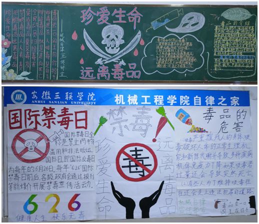 学院通过主题班会、主题板报、宣传画、条幅签名、防范毒品知识讲座、组织浏览禁毒教育网、进宿舍发放宣传单等多种形式,全谱系、全类别、全方位宣传禁毒知识,深入揭示滥用毒品及新精神活性物质对个人、家庭和社会的严重危害;普及宣传常见麻精药品及部分复方制剂的药品、毒品危害;教育引导广大师生牢固树立“健康人生、绿色无毒”的生活理念。