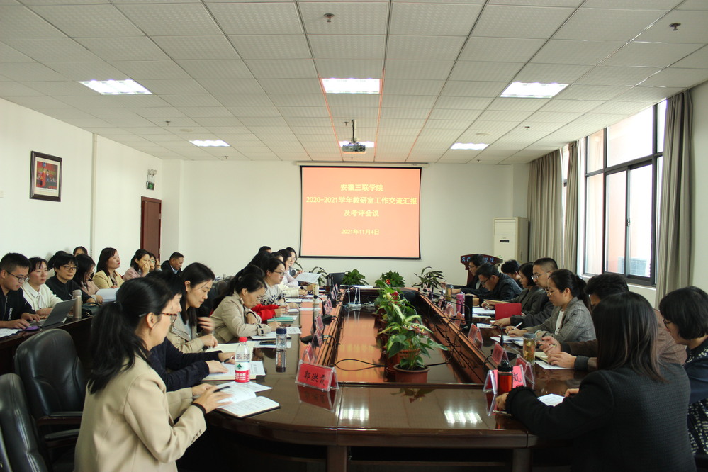 分组评审阶段采用人文艺术、理工类交叉互评互促方式进行。36个教研室主任依次汇报了2020-2021学年教研室工作总结、存在问题及工作展望。评审委员根据《安徽省普通高校基层教学组织(教研室)标准化建设和示范标准(试行)》《安徽三联学院教研室工作考评指标体系》,结合听取汇报情况及相关支撑材料,从组织建设、教学管理、教学建设、教学改革、科学研究等五个方面进行全面评价,并指出改进建议。