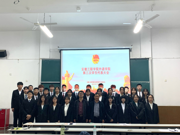 11月4日,外语学院举办第三次学生代表大会。学院党委书记、学管副院长吴月星,团总支书记梁帅及教师代表何晓晴出席大会,大会由团总支学生副书记殷媛媛主持。