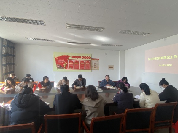 为认真贯彻落实安徽三联学院2021年秋季学期第三次学生工作联席会议暨防范电信网络诈骗专题会议精神及工作要求,11月9日,财会学院召开安全稳定工作会议,学院领导班子及全体辅导员参加会议,会议由执行院长宋梦岚主持。