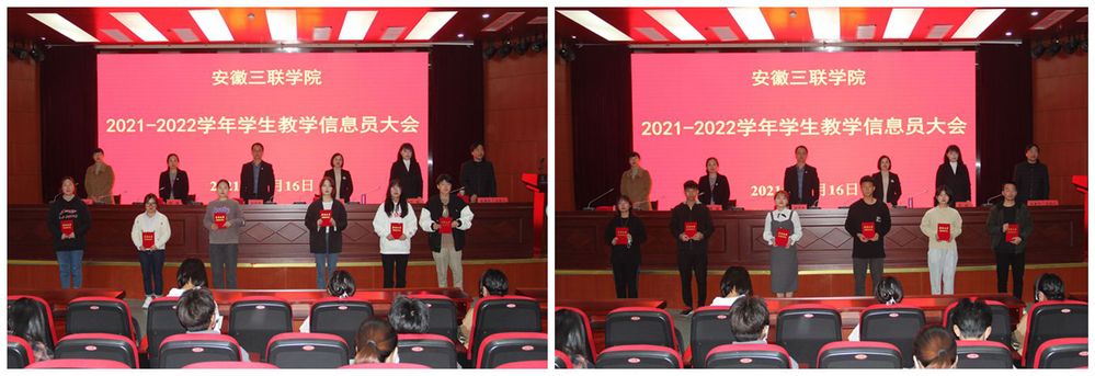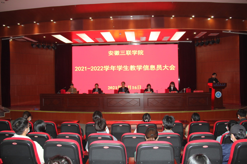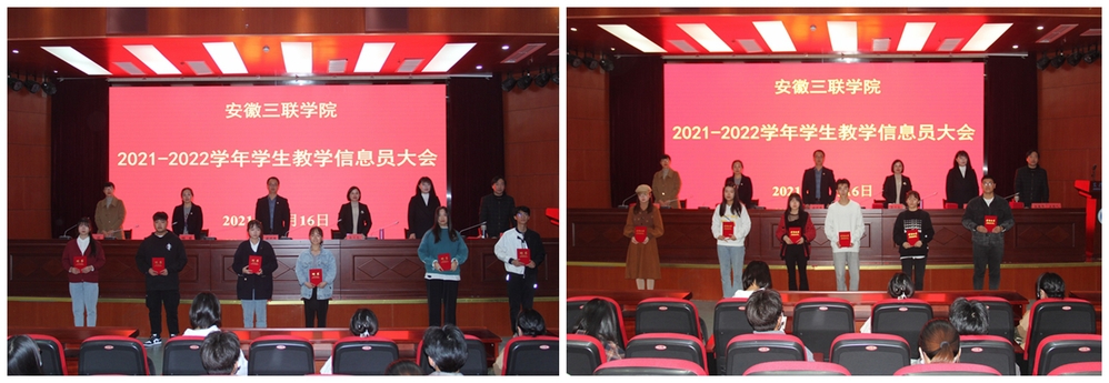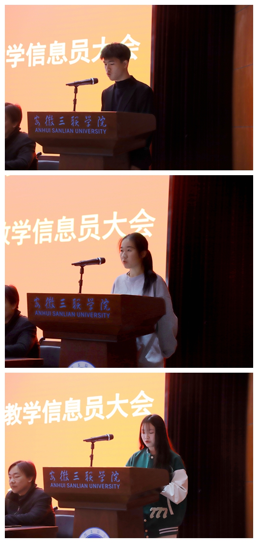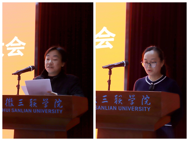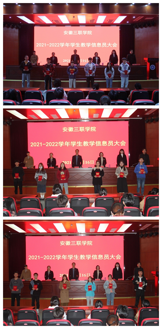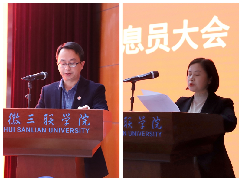 蔡文芬宣读了《关于表彰安徽三联学院2020-2021学年优秀信息站站长和优秀教学信息员的决定》《关于聘任安徽三联学院2021-2022学年信息站站长和教学信息员的决定》文件。
