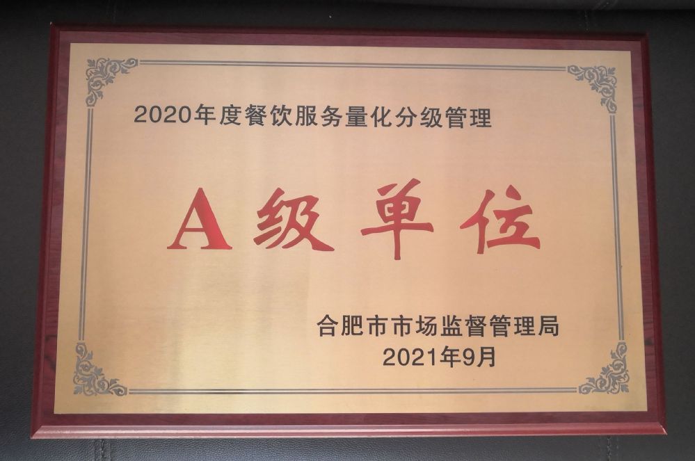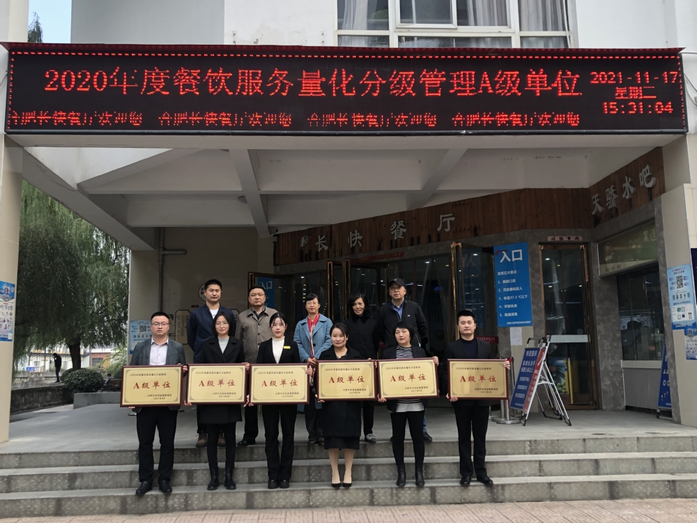 在合肥市市场监督管理局组织开展的2020年度餐饮服务食品安全监督量化分级A级(优秀等级)单位评定工作中,我校A楼一食堂、二食堂、三食堂,B楼一食堂、二食堂、三食堂获评合肥市2020年度餐饮服务食品安全监督量化分级管理A级(优秀等级)单位。此次共有18家单位入评,其中包含了我校6家食堂餐饮单位。