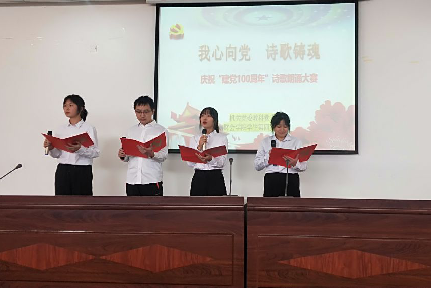 为丰富党史学习教育形式,将红色经典诵读活动融入党史学习教育,教科党支部与财会学院学生第四党支部于11月15日,在B01报告厅开展了“我心向党”诗歌朗诵主题党日活动。