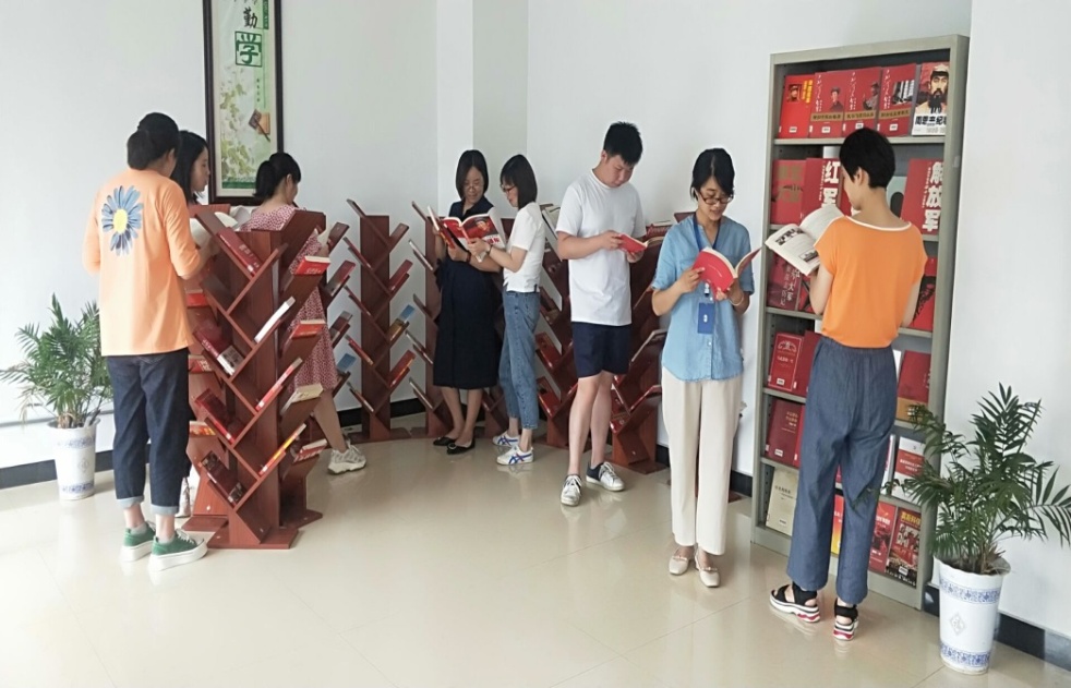 现场学习氛围浓烈,教科党支部组织委员、图书馆流通阅览室主任程莉为大家进行建党知识介绍和红色资源推荐。党员们认真观看聆听、细读有关党的百年发展历史书籍,感受党走过的每一段路;积极抒发自己对党的认识,相互交流分享,从中充分汲取红色养分,更好传承红色基因。