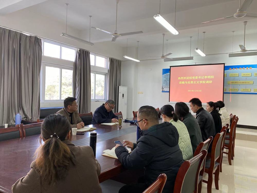 在与马克思主义学院班子成员及教师代表座谈时,李明阳深入了解马院党史学习教育的开展、课程建设和师资队伍建设状况,对马克思主义学院在党史学习教育、理论宣讲、教学竞赛中所做的积极探索和特色亮点给予了充分肯定,对获得第二届全国高校思政课教师教学展示特等奖教师高元龙表示祝贺。他强调,第一,把握好方向,牢记使命,守住底线,突出立德树人的重要意义;第二,要抓住机遇,紧密结合党史学习教育,充分发挥特色优势,深化思政课程改革;第三,要乘势而上,加强创新意识,深化马克思主义学院内涵建设。他希望马克思主义学院领导班子带领全体思政课教师潜心教学、深入研究,持续深化教育教学改革,不断创新教学方式方法,充分发挥思政课在立德树人、铸魂育人中的关键作用,努力培养堪当民族复兴大任的时代新人。(撰稿、摄影:余晖 编辑:刘欢)