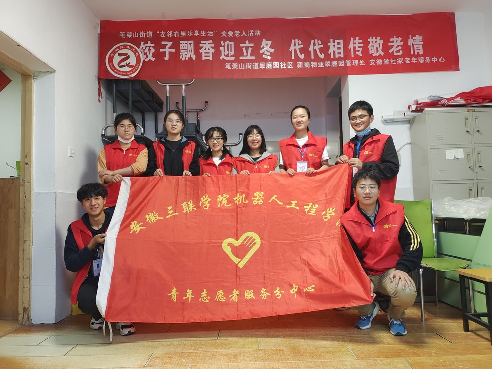 机器人工程学院青年志愿者服务分中心在庭园社区给社区老人包了鲜美的饺子,弘扬敬老、爱老的传统美德,培养奉献、友爱、互助的志愿者精神。