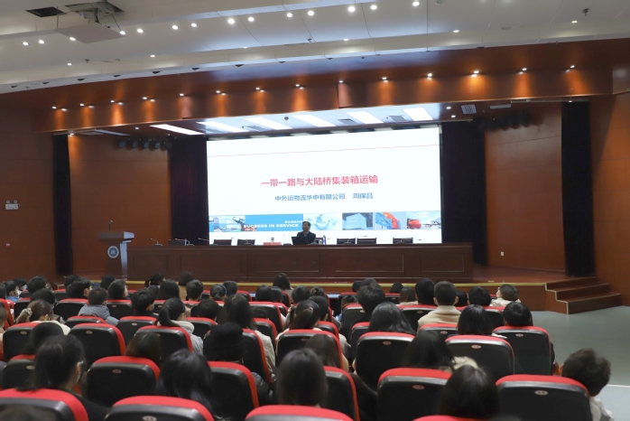 报告会前,副校长蔡文芬对周保昌一行的到来表示热烈欢迎,对其在我校专业建设、学科竞赛等方面给予的帮助表示感谢,并期待校企双方能够开展深度合作。报告会上,周保昌凭借着自己在企业和高校积累的丰富经验和广阔阅历为师生们讲解了一带一路与大陆桥集装箱运输的关系,详细介绍了“一带一路”“国民经济运输体系”“国际铁路联运”“大陆桥运输”概念知识,并就大陆桥运输操作实务、未来发展趋势等内容做了解读。针对同学们提出的物流行业发展的一些现状及问题,周保昌一一做了专业解答,现场气氛活跃,大家争取宝贵的机会踊跃发言。同时,周保昌向在场的各位同学提出期望:打好基础,学好专业知识;扩大知识面,提升专业技能;学以致用,注重实际技能的培养。此外,中外运物流华中有限公司运营中心总经理罗玉霞简要介绍了公司的基本情况,解读了公司在管理、服务、营销、产品、技术、运营等岗位对员工素质能力的要求,鼓励同学们加强专业知识学习,指明今后努力方向。