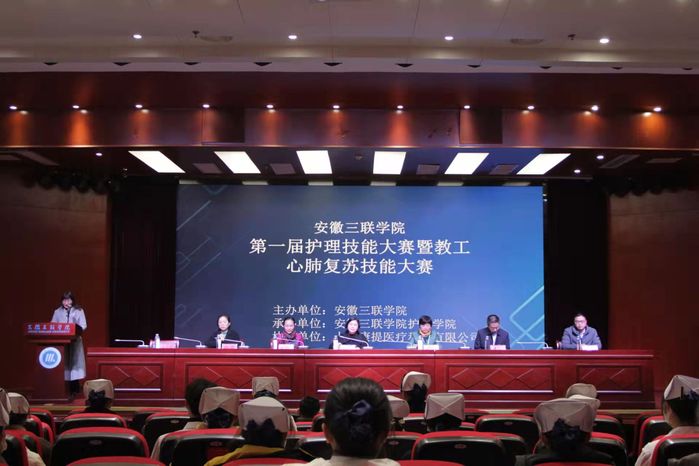 12月19日,在做好疫情防护前提下,学校举办安徽三联学院第一届护理技能大赛暨教工心肺复苏大赛。安徽省护理学会监事长郭琼、中国科学技术大学附属第一医院护理部主任储爱琴莅临指导,副校长蔡文芬、校长助理傅炜、教务处处长程苗、上海康提医疗科技有限公司总经理方琦出席开幕式,开幕式由护理学院执行院长兰先兰主持。