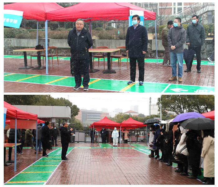 上午十时,演练现场总指挥,校党委副书记、副校长鲁先长宣布演练正式开始。此次演练旨在进一步细化疫情防控条件下学生入校流程以及提高学生进宿舍健康检测的突发应急处置能力,分别在生活区入口、宿舍楼前两个场景进行模拟。