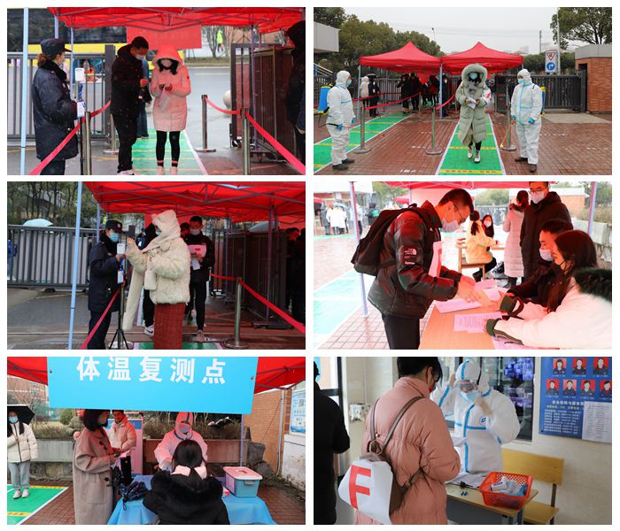 由辅导员模拟学生入校,分为ABCDEF六类,报到期间学生听从现场管理人员的安排,送学车辆一律不得入校,即下即走,不得在校门口停留。引导学生按照一米间距分割线排队,经工作人员查验健康码、安康码、同乘码,外省旅居轨迹学生48小时内核酸检测报告,测量体温正常,核验身份无误后,领取报到通行证依次通过相应入口进入学校。根据安排,本次演练设置了体温检测异常、未经批准返校、安康码为黄码、返校无核酸检测报告等情况应急处置。