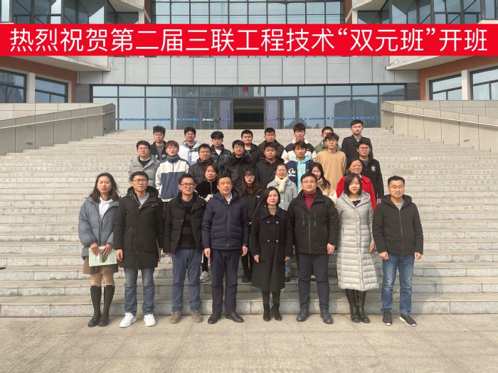 为深化产教融合及教育教学改革,实现学校人才培养与社会需求无缝衔接,提高人才培养质量和社会服务水平。2月23日,我校举行与安徽三联交通应用技术股份有限公司共建的第二届三联工程技术“双元班”(下简称“双元班”)开班仪式。安徽三联交通应用技术股份有限公司人力资源部总监郭珂、拓展支持部主任马静、招聘主管柳家牛,我校副校长蔡文芬、实践教学部部长王力、交通工程学院教学副院长江胜月及辅导员代表、第二届三联工程技术“双元班”全体学生参加开班仪式。仪式由交通工程学院执行院长凤鹏飞主持。