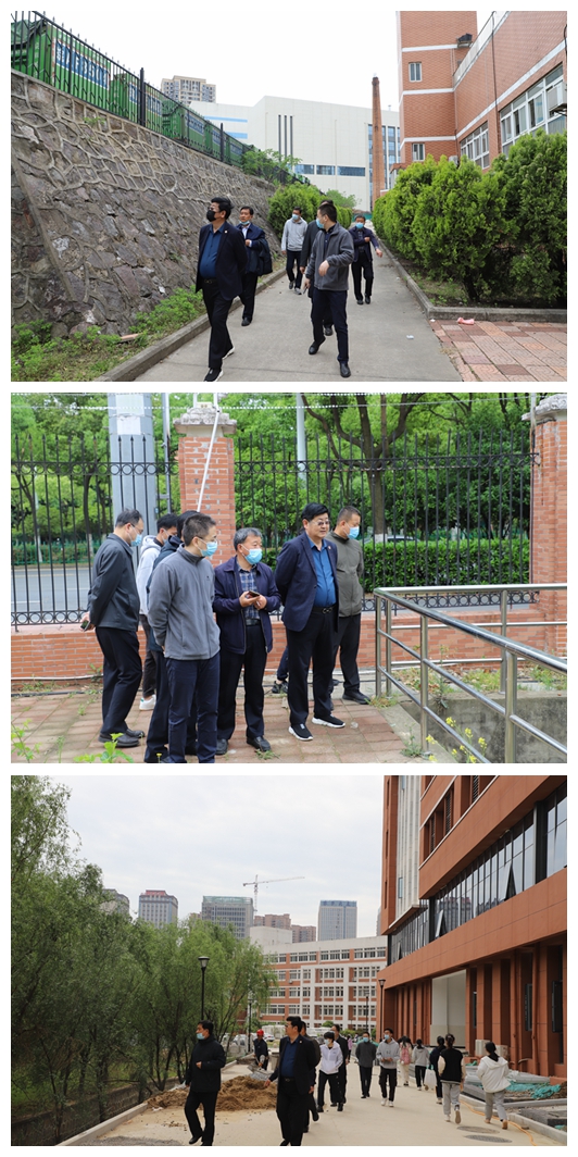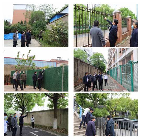 教学区的少部分围墙发现有几处水泥层因陈年风吹日晒出现了裂缝,校领导安排总务处随行人员将其拍照做标记,以作统一修整;新教学片区有部分与居民的小区相邻,由于居民小区所带围墙坍圮,年久失修,为了保证我校师生的安全,避免闲杂人员从此处进入学校,我校设置了铁皮围墙护栏,将校内校外严格区分出来;在生活区,校领导重点检查了学生宿舍周围加装钢刺网后的围栏以及操场周边的围墙防翻越情况。鲁先长严肃指出通往生活区的人行天桥易翻越点和没有加装钢刺网的围墙存在的翻越风险,要求一定要排除任何可能存在的攀爬、翻越的隐患。与此同时,校领导也对教学区和生活区的环境情况进行了巡查。