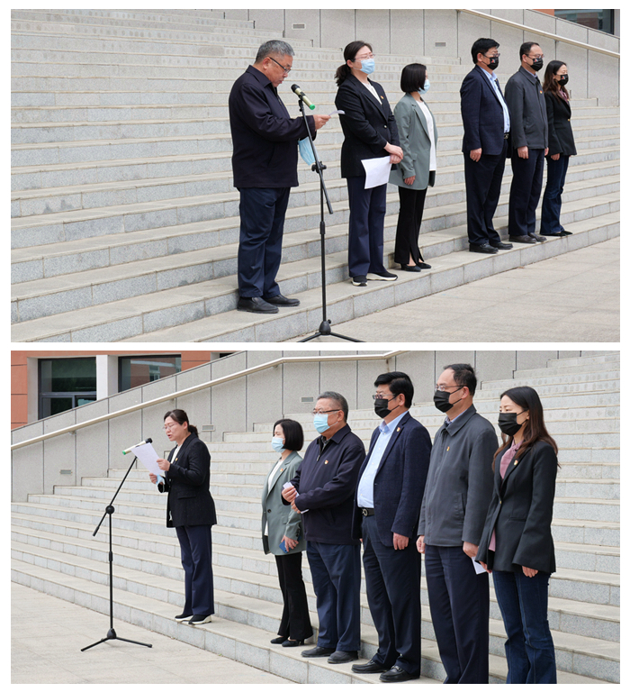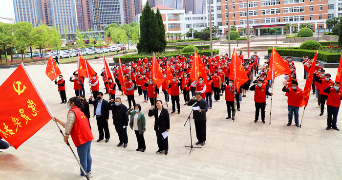 4月20日,学校举行党员突击队授旗誓师仪式。省教育督导专员、校党委书记李明阳出席仪式并讲话。校党委副书记、副校长鲁先长向各基层党组织党员突击队授旗。副校长、校疫情防控领导小组办公室主任刘峥领誓誓师。校党委委员、副校长宋梦岚主持仪式。校党政领导蔡文芬、范兆红,校党委委员、纪委成员和党员突击队成员代表参加仪式。