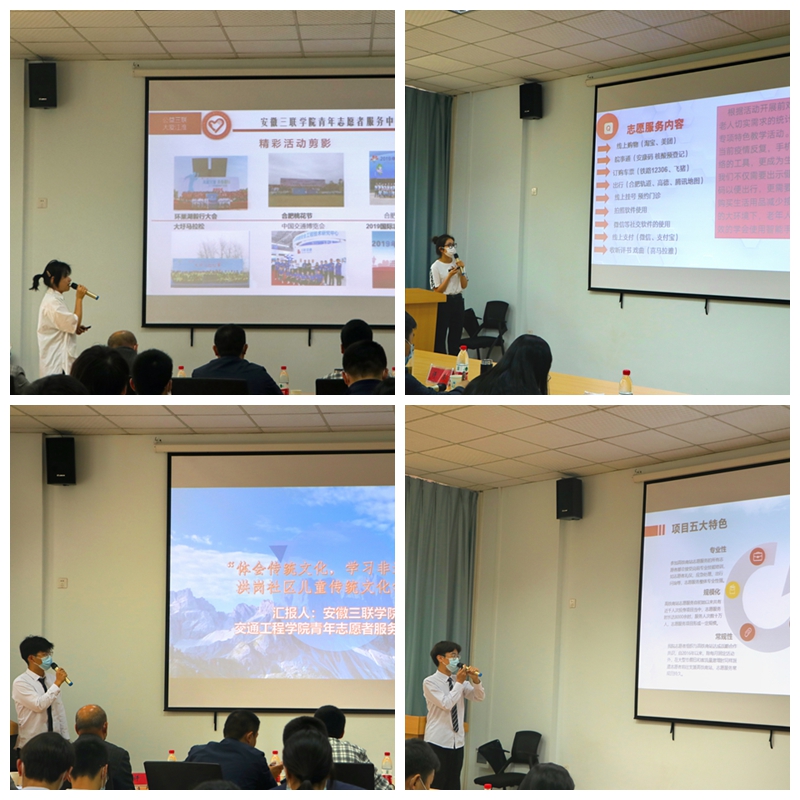 本届青年志愿服务项目大赛校内选拔赛面向我校青年志愿者服务中心及10个二级学院分中心,包含关爱特殊群体、环境保护、弘扬传统文化、助力大型赛事、社区志愿服务等多个类别志愿服务项目。经过前期层层筛选,28个志愿服务项目从47个项目中脱颖而出,进入决赛参赛。在疫情防控常态化情况下,比赛现场采用了线上抽签的方式来决定选手出场顺序。28组选手依次上台,从项目背景、运营情况、项目特色、项目成果及未来规划等方面详细讲解服务项目内容。“青春之梦,志愿之魂”通过联合合肥各大型赛事活动,积极开展优势志愿服务项目,打造三联新名片;“与爱同行,圆梦高铁”联合高铁南站工作人员共同开展服务惠民活动,解决搭乘高铁问题,对外展示出我校志愿风采;“弘扬传统文化,守护精神家园”秉承“剪纸寄情,匠心传承”理念,以剪纸为纽带,弘扬传统文化,守护精神家园……此外,还有很多志愿服务团队提出了不同的思想,以特殊的方式进行志愿服务,通过精彩的ppt汇报展示出他们对服务工作的热情。汇报者激情洋溢、神采飞扬,展示内容充实、材料丰富、紧扣时代主题。将本专业知识与志愿服务活动相结合,最大化发挥高校资源,贯彻落实“志愿之行,我们一直在路上”的志愿精神。答辩期间,评委老师围绕项目开展情况、志愿服务的具体性、项目内容的独特性进行提问并给予相应建议,评选出3个一等奖,6个二等奖和9个三等奖,分别给予获奖项目一定的资金支持,同时也为今年参加安徽省第六届志愿服务项目大赛做好筛选和报送准备。
