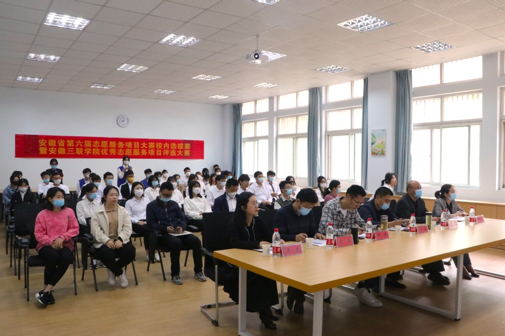 为迎接第73个五四青年节,弘扬我校“公益三联,大爱江淮”的志愿服务理念,推动志愿服务制度化、常态化运营,我校于4月28日举办安徽省第六届志愿服务项目大赛校内选拔赛暨安徽三联学院2021年度优秀志愿服务项目评选活动。党委组织部部长张启元、教务处处长程苗、科研处处长罗忠、就业创业处处长程学华、学生处副处长潘玉廉、图书馆副馆长李燕、校团委副书记刘德科担任大赛评委,各学院团总支书记和28个入围项目答辩人出席本次活动。