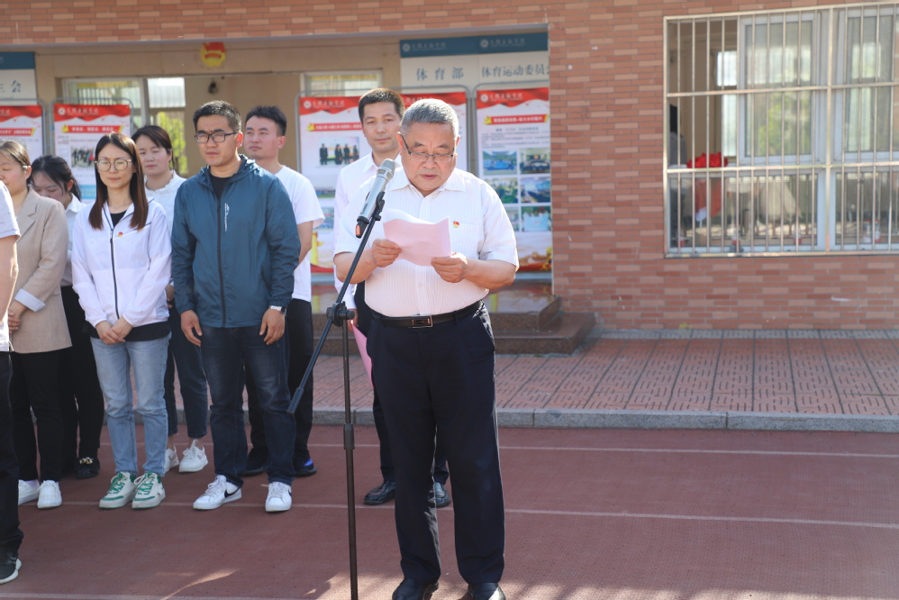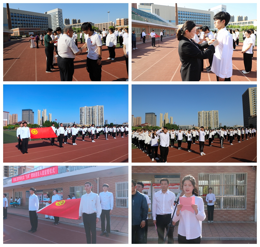 仪式在庄严的国歌声中拉开序幕,宣读名单后,李明阳、鲁先长及党委委员分别为新发展的80名新团员佩戴团徽,并表示祝贺。新团员面对鲜红的团旗庄严宣誓,朱雨辛同学代表新团员发言,表达继承和发扬五四精神,始终坚定不移跟党走、以新面貌奋进新征程的决心。