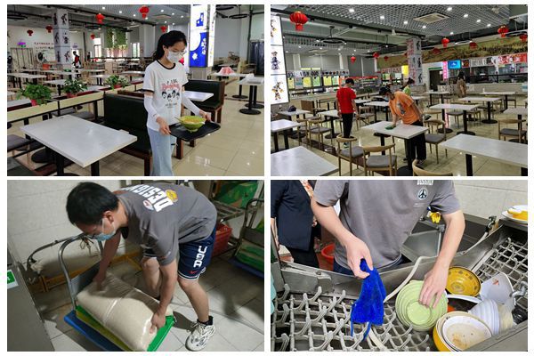 在用餐大厅,同学们秉持艰苦奋斗的精神和乐观向上的态度,勤勤恳恳地清理桌面油渍垃圾;在食堂后厨,同学们不畏脏累,洗刷碗筷、搬运大米,亲身体验后勤人员的辛劳。通过开展劳动教育活动,同学们深切感受到劳动的宝贵价值与现实意义,体会到劳动带来的快乐。