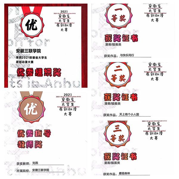 我校动漫与数字艺术学院共推荐39人、28组作品参赛,最终荣获省级一等奖6项,二等奖4项,三等奖8项;安徽三联学院被授予优秀组织奖。