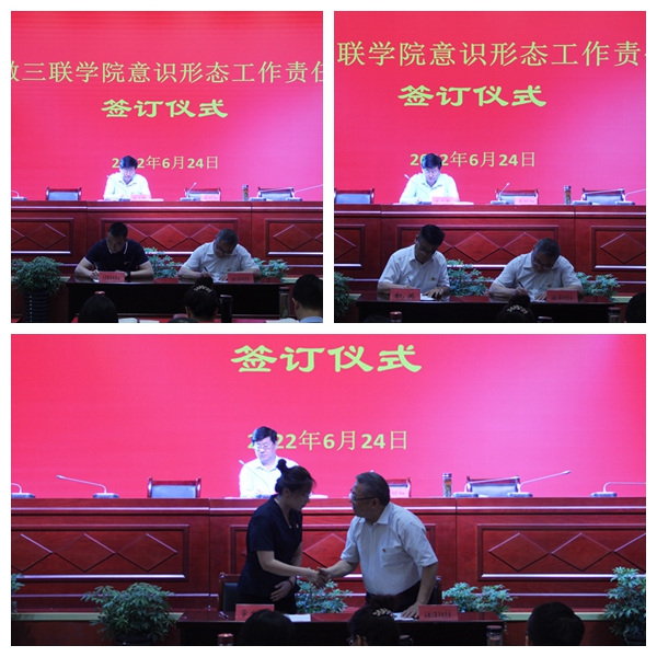 会上,李明阳代表校党委与12个基层党委(党总支)、6个部门代表签订《安徽三联学院意识形态工作责任书》;校党委委员、纪委书记李斌作了上半年学校意识形态工作总结报告;计算机学院、人力资源部等单位(部门)进行了工作交流发言。