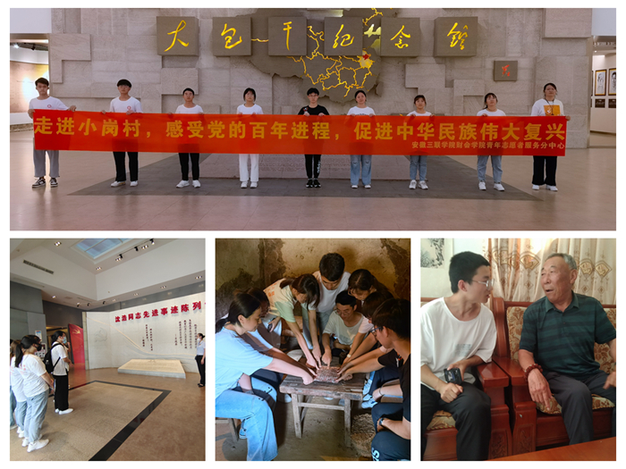 见证百年,探索改革。6月19日至6月23日,实践团队在凤阳县小岗村开展“三下乡”暑期实践活动。在沈浩同志先进事迹陈列馆内,志愿者们通过一些典型物件,比如“私车公用”的轿车等,深刻地体会到沈浩同志爱岗敬业、一心为民、无私奉献的精神。在“大包干”纪念馆内,当年18名村民按下红手印的“生死契约”,重现了当年小岗村“大包干”从酝酿、发生到发展的历史进程。