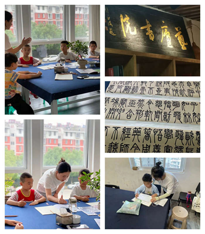 文化点亮心灯,文明美好人生。6月18日下午,“走进书院,感受文化魅力”社会实践团队在艺庐书院开展了以“翰墨书香永流传”为主题的社会实践活动。活动主要围绕志愿服务、教育发展、普及书法知识以及走近并了解书法艺术品等开展。活动中,小组成员认真仔细观摩欣赏珍贵的书法作品,他们的脸上透露着敬意,眼中闪烁着光亮,仿佛已然进入书画中。随后,他们带领小朋友一起学习书法,并且轻声地向他们诉说着书法的由来和发展,小朋友们认真地边听边写,整个书院都洋溢着温馨欢乐的氛围!