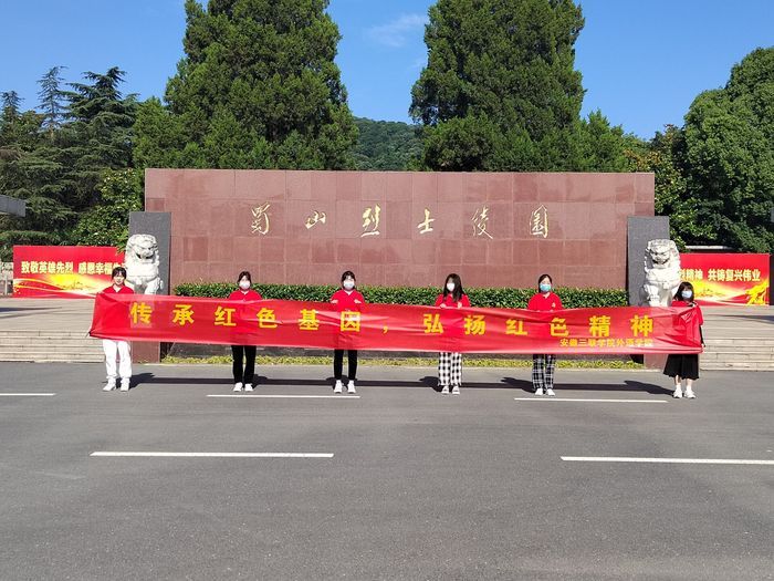 7月11日上午,活动启动仪式在C307举行举行,外语学院团总支书记梁帅参加仪式。当日下午,团队一行前往蜀山烈士陵园,映入眼帘的是广场中央矗立着的雕刻着革命先辈们冲锋陷阵身影的浮雕,浮雕上题字“江淮英雄永垂不朽”。志愿者们整齐列队,向先辈们深情鞠躬,表达缅怀和敬佩之情;高举右拳,在浮雕前重温入团誓词,不忘初心使命;开展园区清扫活动,体验今天幸福生活的来之不易。