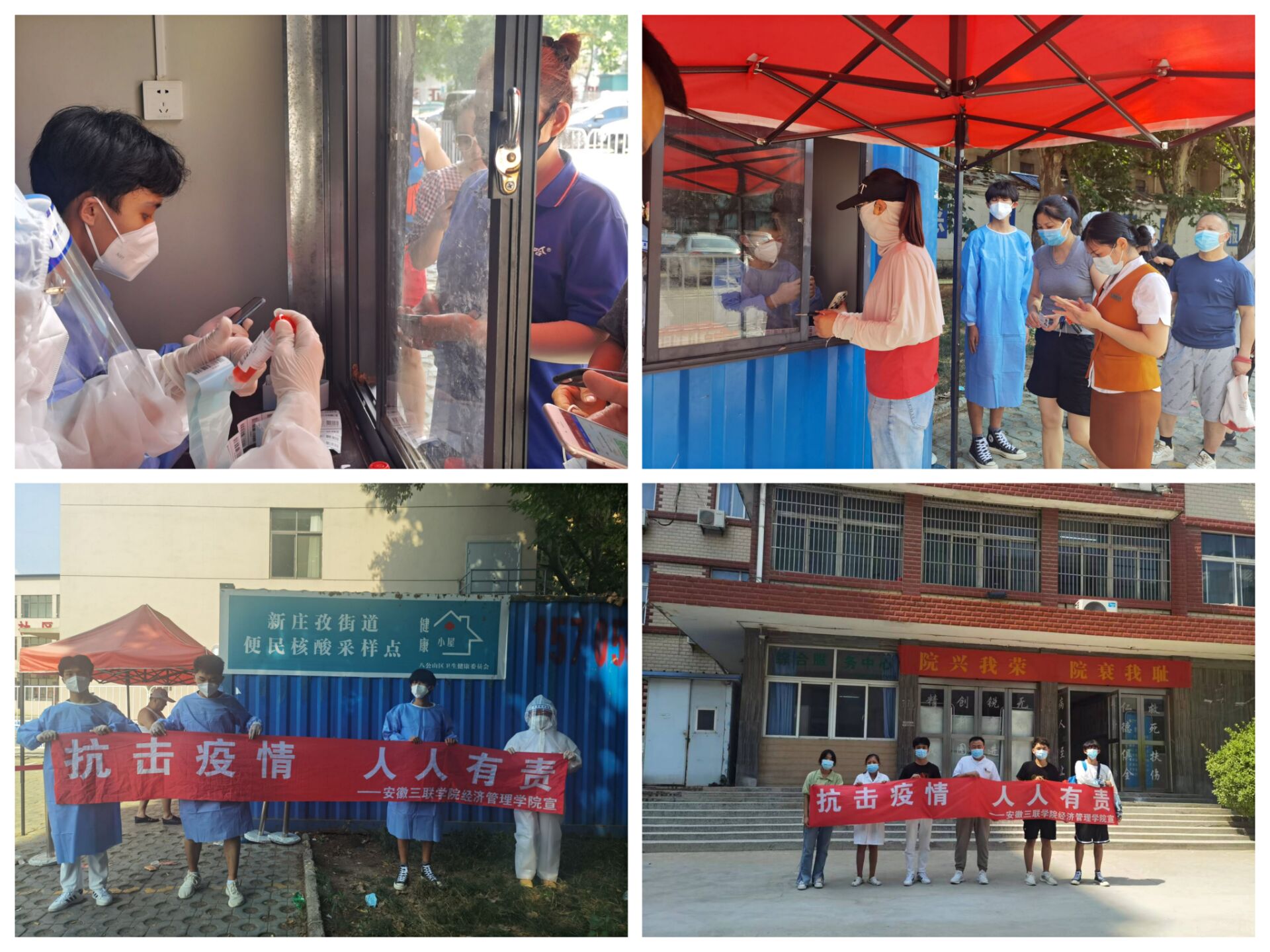7月15日,三下乡小队出发前往淮南市八公山区开展了以“助力抗疫,传递能量”为主题的社会实践活动。通过帮助医护人员进行核酸检测,在疫情防控工作中真正做到感同身受,参与到基层工作中深刻体会各基层疫情防控做出的努力。了解到国家在疫情暴发时的大局观和决策观,更加清楚的认识到祖国的强大与昌盛,在社区进行疫情防控宣讲,向居民现场讲解疫情形势,普及疫情防控知识。让更多的青年参与到城市的疫情防控中,让大家充满民族自豪感与荣誉感。