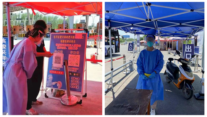 志愿者们在方兴大道、集贤路、南淝河等多个高速道口对进出人员进行登记、测温、记录、张贴宣传海报,志愿者们不辞辛苦,不惧酷暑,尽自己所能为家乡合肥的疫情防控贡献自己的力量,受到合肥团市委和广大市民的高度赞誉与肯定。参加活动的张依同学感叹道:“在校团委的号召下,我报名前往南淝河道口参加值守,引导来(返)肥人员做核酸检测。烈日炎炎,我才站了几分钟后背就已经湿透,我想到在疫情期间顶着烈日给大家做核酸的‘大白’们,他们还穿着厚厚的防护服,心中十分敬佩。守住城市的道口,就是守住病毒入侵的入口。虽然我只是一名平凡的志愿者,但是我很开心能为社会做出贡献,奉献自己的微薄之力。我相信,在无数青年志愿者的共同努力下,我们的社会将会变得更美好!”