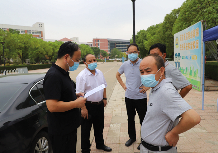 8月26日,在学校即将开学之际,肥西经开区工委委员、管委会副主任周泽升,社会发展中心主任黄金强来我校督查疫情防控工作,指导学生返校复学各项工作部署。副校长秦永元,副校长、疫情防控办主任刘峥,综合办、学生处、校医院相关部门负责人陪同督查。