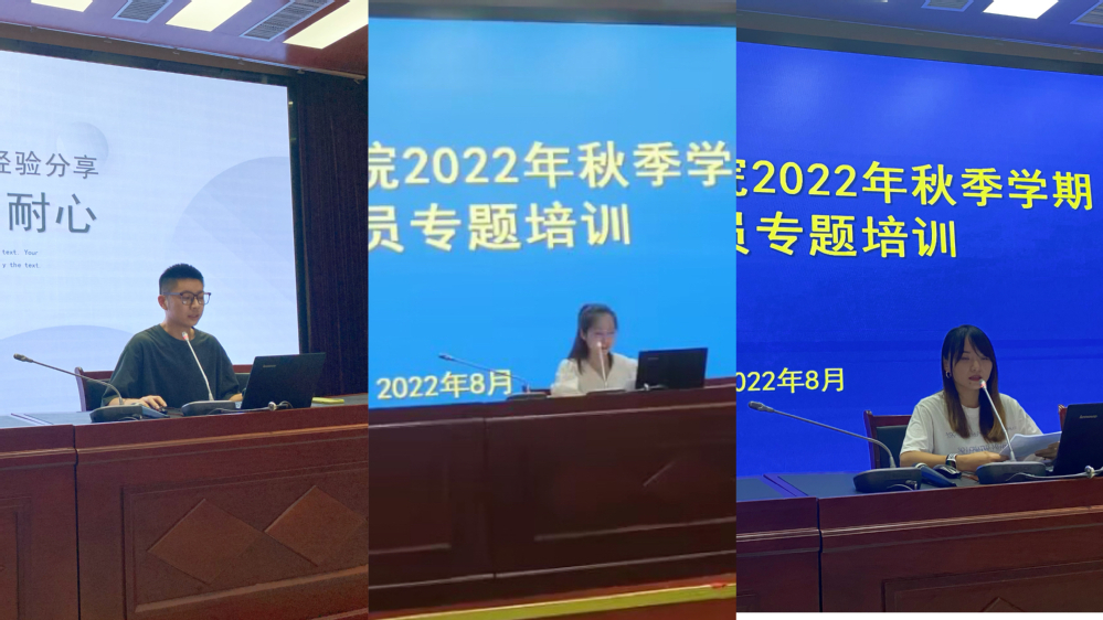 培训会分别邀请了三位辅导员代表作交流发言。财会学院刘天伟老师分享了自己的安徽省辅导员素质能力大赛备赛经验、比赛技巧和参赛心得;外语学院蒋瑀老师作为新进辅导员,介绍了自己工作以来的心得体会,抒发了坚守立德树人初心,立志做学生思想的引航者、成长成才的助力者的育人情怀;护理学院叶茜璐老师从“严爱并存、找准重心、注重积累”三个方面讲述了自己对辅导员工作的认识、在担任辅导员过程中遇到的挑战以及对接下来工作的想法和思路。