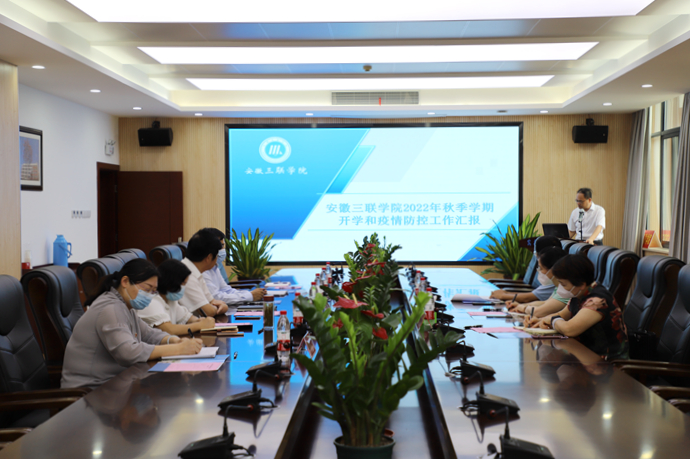 汇报会上,鲁先长对检查组一行莅校指导工作表示热烈欢迎和衷心感谢。他表示,在省教育厅的正确领导和属地疫情防控部门的科学指导下,学校从严从紧落实校园疫情防控管理工作,高标准做好各项防疫措施,开学后总体秩序平稳。刘峥向检查组汇报了安徽三联学院2022年秋季开学疫情防控工作开展情况,从我校落实“四方责任”、认真聚焦制定《开学方案》、掌握师生行动轨迹、精准摸排建立台账、统筹安排做好疫情防控工作等五个方面详细汇报学校开学疫情防控工作的具体举措。他表示,学校将进一步压实责任、上下一心、持之以恒,抓紧抓实抓细防控工作,筑牢校园安全防线。