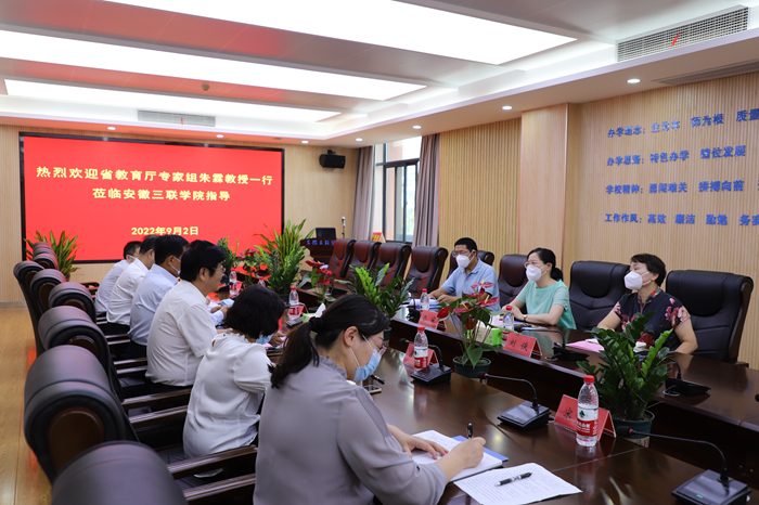 9月2日上午,安徽省教育厅秋季开学疫情防控第四检查组成员安徽医学高等专科学校党委委员、教务处处长朱霖(任组长),安徽医学高等专科学校机关党总支书记刘侠,安徽医学高等专科学校公共卫生与健康管理学院院长王万荣来我校检查2022年秋季学期开学疫情防控工作落实情况。校党委副书记、副校长鲁先长,副校长秦永元、蔡文芬、刘峥、宋梦岚,校长助理傅炜,综合办(防控办)、学生处、教务处、人力资源部、实践教学部、总务处(校医院)、保卫处等部门负责人全程陪同检查。