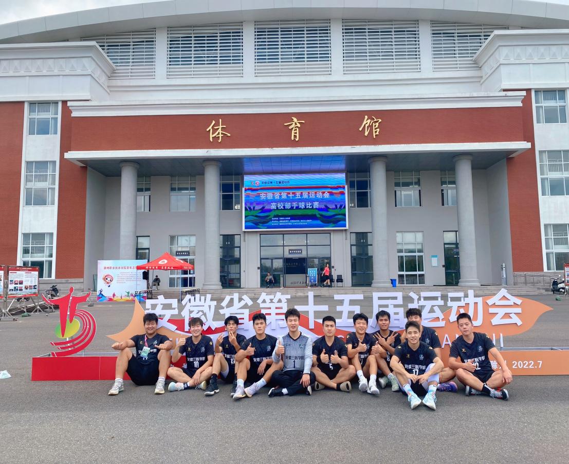 安徽省第十五届运动会高校部手球比赛于8月26日至9月4日在滁州职业技术学院体育馆举行,来自全省24所高校34支代表队参加此次比赛。我校手球队主教练刘梦鑫老师带领11名运动员参加了本届省运会高校部手球男子甲组的比赛。经过8天的激烈角逐,我校运动健儿不惧强敌,顽强拼搏,取得了安徽省第十五届运动会高校部手球比赛男子甲组第5名(三等奖)的好成绩,并荣获体育道德风尚奖。