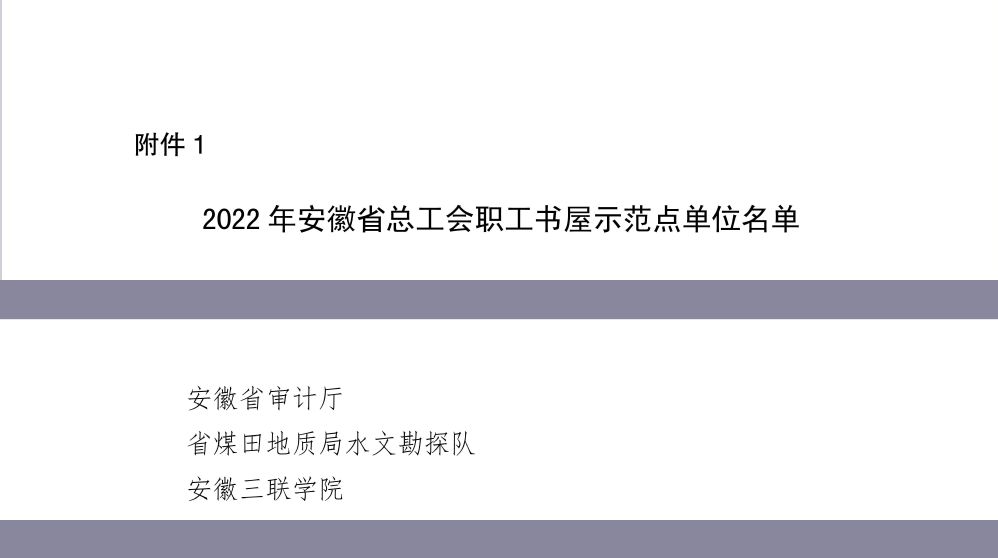 近日,安徽省总工会通报“2022年职工书屋示范点”评选结果,经学校、省教科文卫体工会推荐,省总工会审核、研究通过,学校获评“2022年省级职工书屋示范点”,为省内同类院校首家职工书屋,也是今年唯一入选高校示范点。