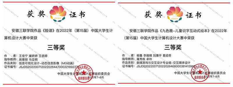 近日,由中国大学生计算机设计大赛组织委员会主办的2022年(第15届)中国大学生计算机设计大赛落下帷幕,安徽三联学院参赛团队荣获国赛三等奖2项。
