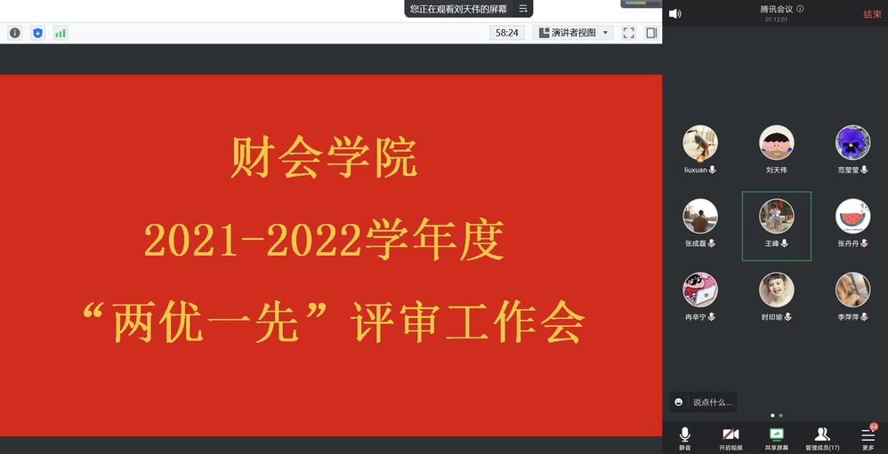 财会学院2021-2022学年“两优一先”评审推荐工作顺利完成。(撰稿、摄影:刘天伟)