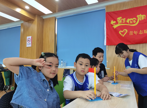 今年,我校社会实践活动注重与专业特点结合、与地方需求结合,紧扣“喜迎二十大 永远跟党走 奋进新征程”这一主题,在校党委统一部署和校团委的精心组织下,全校在校生积极参与其中,共有3支国家级重点团队,1支省级专项团队,10支校级、20支院级重点团队以及近100支生源地实践团队围绕理论普及宣讲实践、党史学习教育、乡村振兴促进实践、发展成就观察实践、志愿服务文明实践、“返家乡”社会实践等六个方面重点内容奔赴各地开展暑期“三下乡”社会实践活动。其中,“点亮童心,与爱同行”志愿服务队在校团委朱悦老师的指导下,在小乔湾社区开展为期10天的志愿服务活动。团队致力于为城市随迁子女、防疫一线工作者子女开展学业辅导、亲情陪伴、心理辅导、自护教育、素质拓展等形式的精准关爱志愿服务,充分将党史、团史学习教育与科学知识拓展相结合,将中华传统文化、红色历史与科学知识深入儿童内心,为孩子们带去高品质、欢乐、难忘、有意义的暑假生活。