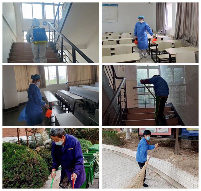 创洁净环境,建美丽校园。为维护校园卫生整洁,学校物业保洁人员每日认真做好校园卫生环境清洁及垃圾清运工作,在教学楼、实验楼等公共区域做好定时消杀,保障校园干净整洁,为在校师生提供舒适、温馨的学习和生活环境。