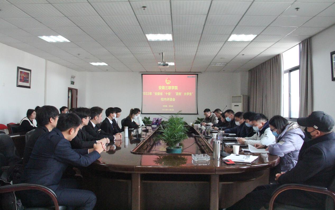 据悉,校团委自接到安徽省《关于开展2022年安徽省“‘十佳’‘百优’大学生”选树工作的通知》(皖青联〔2022〕42号)的文件后,高度重视,精心组织,与学生处联合成立评审小组。经过初选,二级学院共择优推荐22名候选人参加评审会,参评者分别从道德示范、学风创优、科技创新、社会实践、自强奋斗等10个类别进行申报。为方便在校外实习的学生参评,此次评选会采用线上+线下汇报相结合的方式,同学们通过PPT汇报个人成长经历,以及各自取得的成绩与奖项,分别展现了优秀学子奋发向上、积极进取的精神风貌,为全体学生树立了学习榜样,有助于形成学、比、赶、帮、超的学习氛围,进而培育三联学子的优良学风。