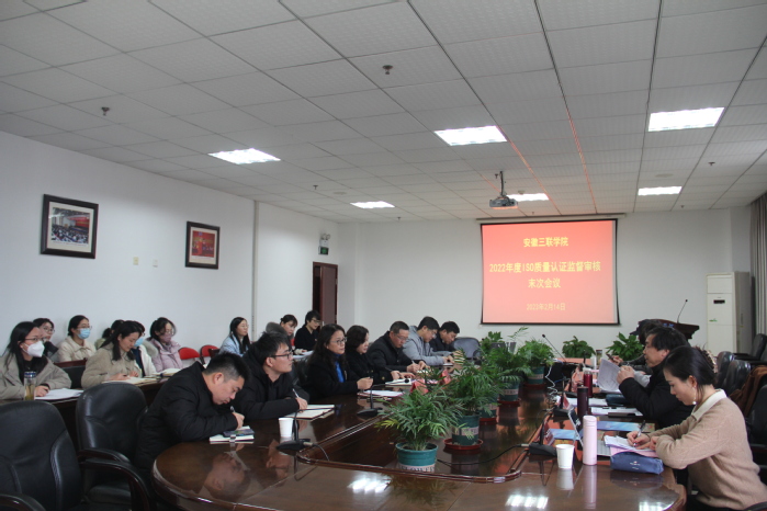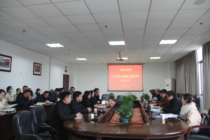 2月14日,中国质量认证中心安徽评审中心专家组孔钰一行五人来我校开展2022年度ISO质量认证监督审核工作。上午九时,审核工作首次会议在T518会议室召开,常务副校长江秀丽、副校长蔡文芬出席,相关二级学院和职能部门负责人参会。